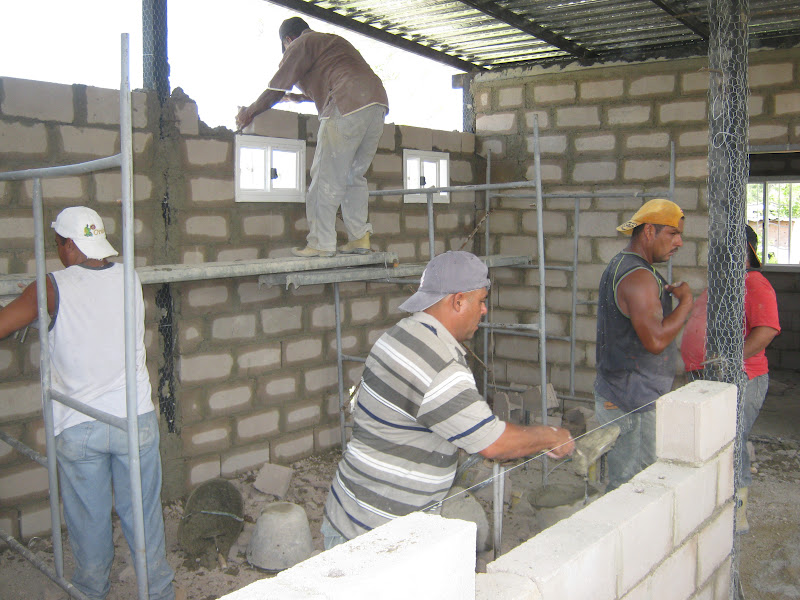 proyecto de autoconstrucción de viviendas, son ayudantes y aprendices en la