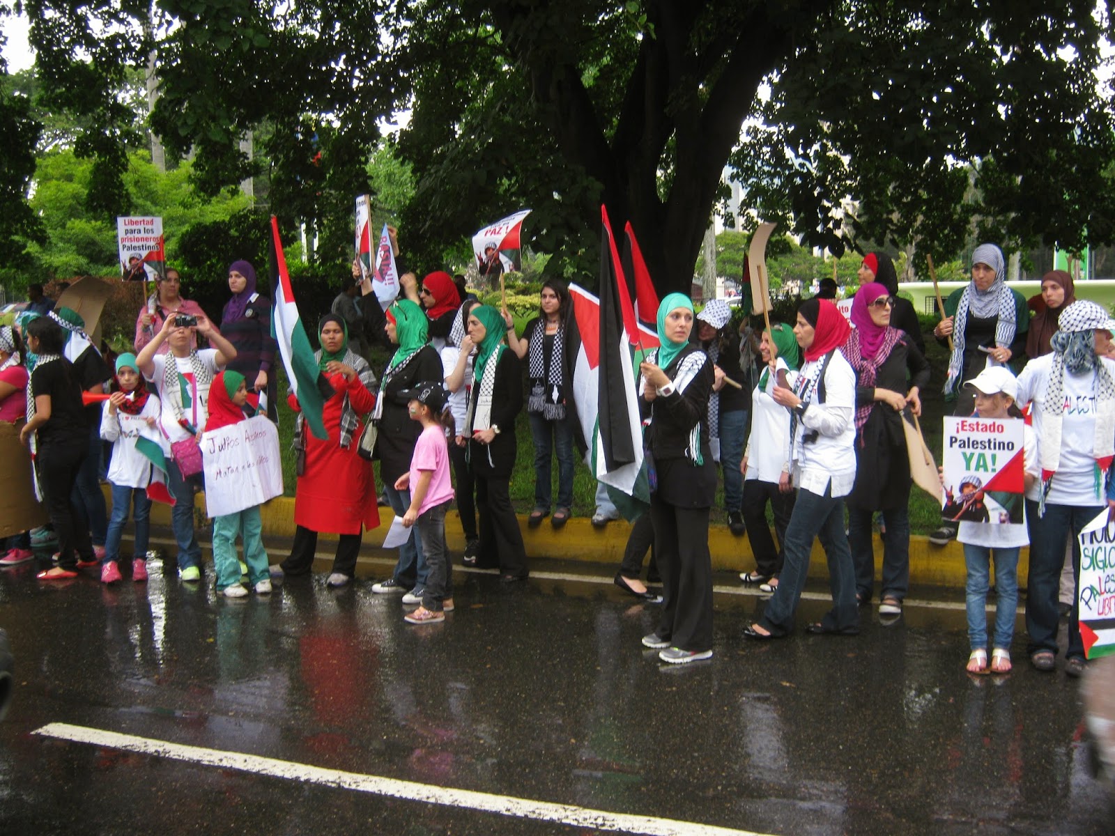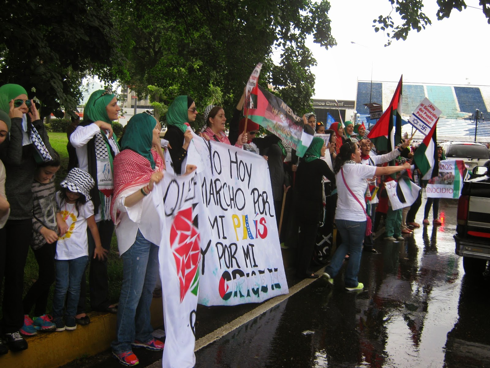 organizaciones sociales y unos 150 miembros de la comunidad palestina en
